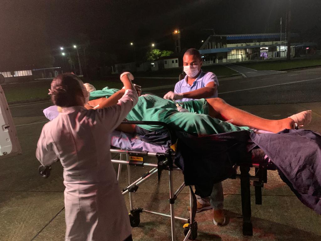 De acordo com o enfermeiro Aramis Vier, logo após os primeiros atendimentos, foi realizado o encaminhamento para o Hospital Metropolitano em Belém. “O paciente recebeu todo atendimento necessário e se manteve consciente em todo período dos exames iniciais e de maneira estável foi encaminhado para o hospital referência em trauma e queimaduras, Metropolitano.”