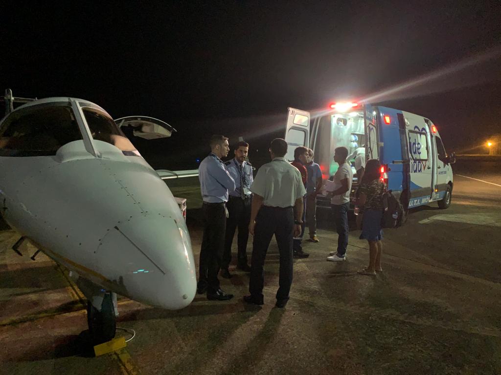 O paciente foi transferido para Belém, em uma UTI Aérea, um jato Learjet 31A, e de acordo com o Diretor Comercial da Brasil Vida Taxi Aéreo, Daniel Henrique Costa Sousa, a aeronave possui todos os requisitos para este tipo de atendimento. “O Learjet 31A, em que o senhor José Delfino foi transportado, é referência no segmento, possui maca removível, bombas de infusão de medicamentos, marcador de pressão arterial, cilindro de oxigênio e medicamentos de emergência. Em 40 minutos de voo, todos nós tripulantes da aeronave, sendo, o senhor José Roberto, sua esposa Rosa dos Santos, o copiloto da aeronave e o enfermeiro, estávamos no destino final, cumprindo o objetivo do transporte aeromédico, de levá-lo com agilidade e segurança para a capital Belém, para que pudesse ser avaliado de forma minuciosa, o que falou a favor do paciente, tendo em vista que o transporte aeromédico foi solicitado e atendido imediatamente”.