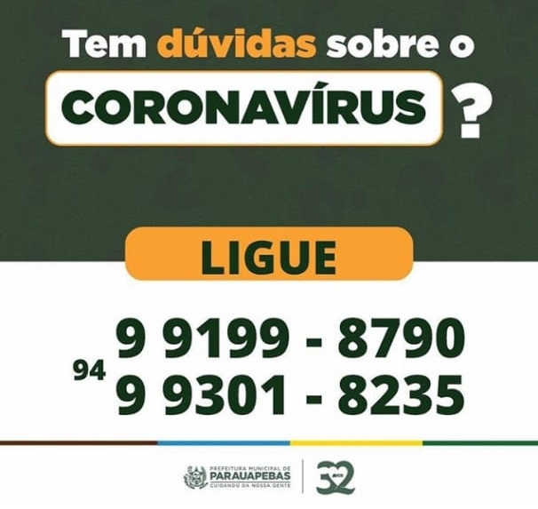 Os números do Disque Covid em Parauapebas são 99199-8790 e 99301-8235.