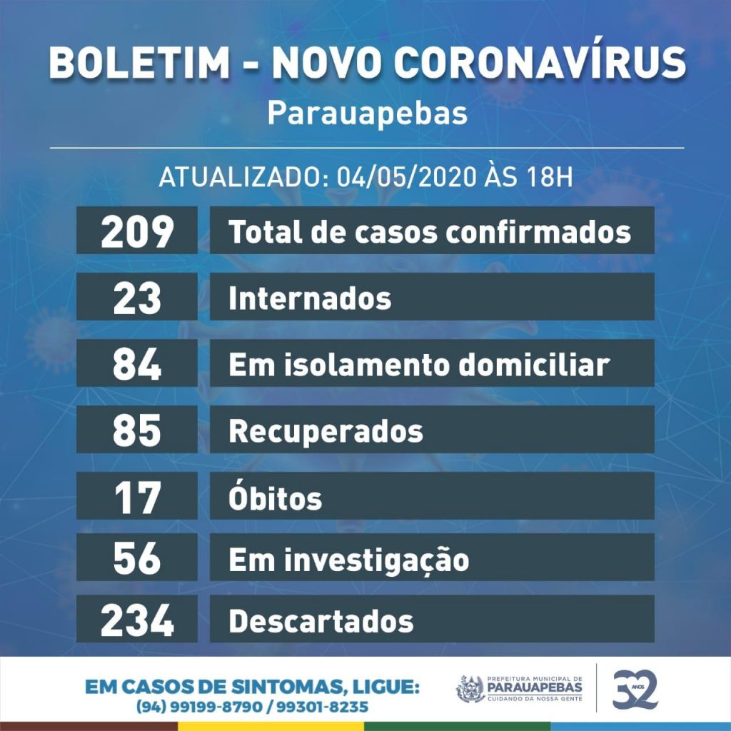 Mais 9 casos de Covid-19 foram registrados nesta segunda-feira (4) e mais duas mortes foram confirmadas ocasionadas pela contaminação no município de Parauapebas. Os dados foram atualizados agora há pouco através do Boletim Epidemiológico que é de responsabilidade da Secretaria Municipal de Saúde de Parauapebas (Semsa).