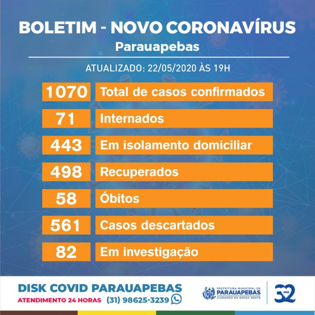 Nesta sexta-feira (22) não houve registro de óbitos por Covid-19. Os novos casos confirmados por testes rápidos ou exame PCR totalizaram em 97. A Prefeitura de Parauapebas reforça a importância do distanciamento social, como forma importante de prevenção do novo coronavírus. O município segue em Lockdown até domingo, 24. Faça sua parte, se puder, fique em casa.