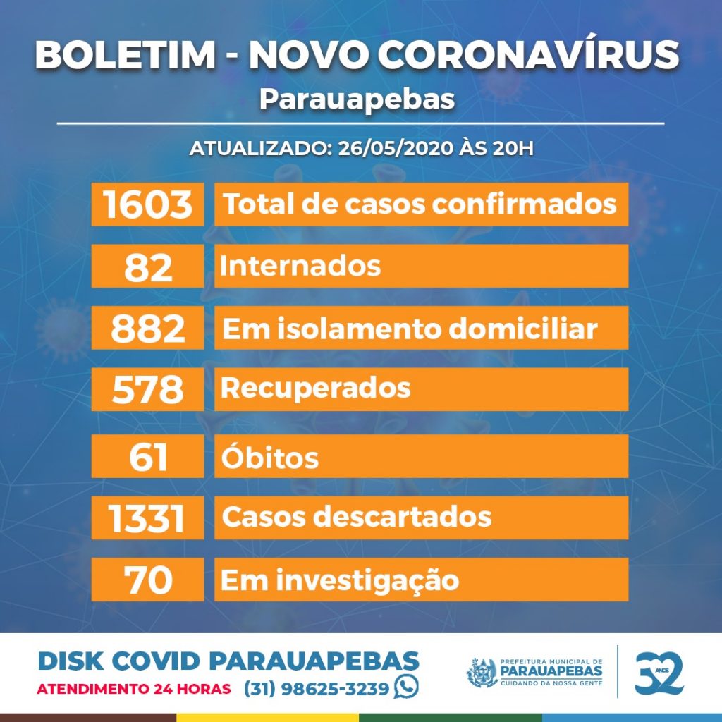 A Prefeitura informa que nesta terça-feira, 26, Parauapebas registra 160 novos casos de pacientes diagnosticados com a Covid-19, por meio de teste rápido e PCR. Houve ainda um óbito – Homem de 37 anos, hipertenso. Estava internado em UTI particular.
