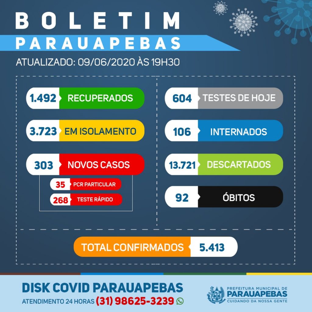 Parauapebas soma 1.492 pessoas recuperadas da Covid-19. Contudo, nesta terça-feira, 9, registramos mais 303 novos casos, confirmados por meio de testes rápidos e exames PCR realizados em laboratório particular. Infelizmente, tivemos cinco óbitos.