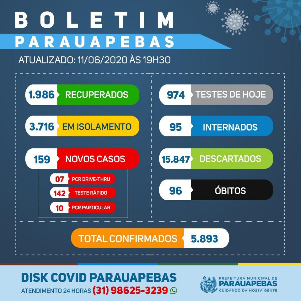 De acordo com dados divulgados pela Secretaria Municipal de Saúde de Parauapebas (Semsa), nesta quinta-feira (11), a “Capital do Minério” registrou o número total de 1.986 pessoas recuperadas da Covid-19. Entretanto, o município registrou 159 novos casos, confirmados por meio de testes rápidos, exames PCR no sistema drive thru e laboratório particular. Infelizmente, tivemos três óbitos.