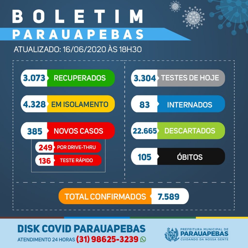 Confira os dados divulgados nesta terça-feira (16) pela Secretaria Municipal de Saúde de Parauapebas (Semsa):