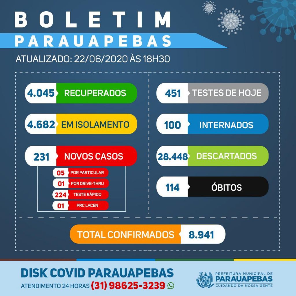 Nesta segunda- feira, 22, chegamos ao número de 4.045 pessoas que venceram a covid-19 em Parauapebas. Infelizmente, registramos mais 231 novos casos da doença.