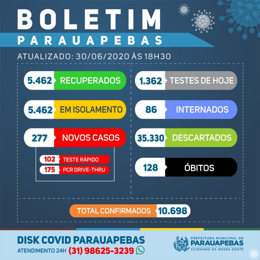 Mais 277 casos de coronavírus foram confirmados, por meio de teste rápido e exame PCR no sistema drive thru, nesta terça-feira, 30. Infelizmente, o município de Parauapebas registrou ainda três óbitos.