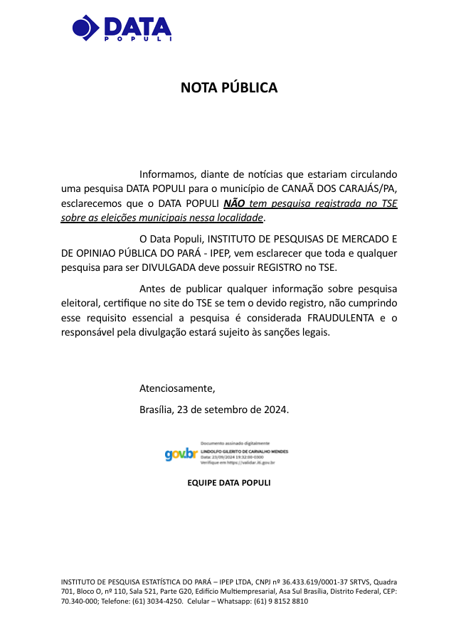 O levantamento foi encomendado pelo Portal Pebinha de Açúcar, que tem sede em Parauapebas e está no ar há mais de 17 anos.