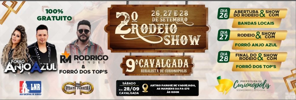 Mais uma grande festa agropecuária está se aproximando para movimentar o sudeste paraense. A Prefeitura de Curionópolis anuncia a realização do 2º Rodeio Show e a 9ª Cavalgada Ruralista nos dias 26, 27 e 28 de setembro, no Loteamento Serra Leste, com grandes atrações.