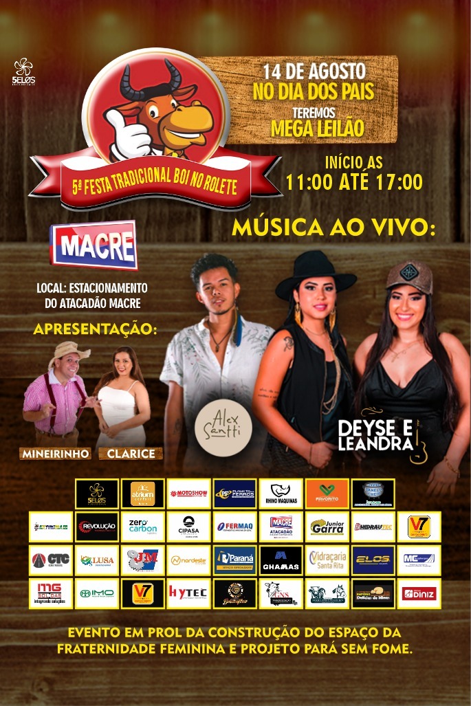 Vem aí a 5ª Festa Tradicional Boi no Rolete que é promovida pela Fraternidade Feminina Cruzeiro do Sul Flores da Acácia de Parauapebas.