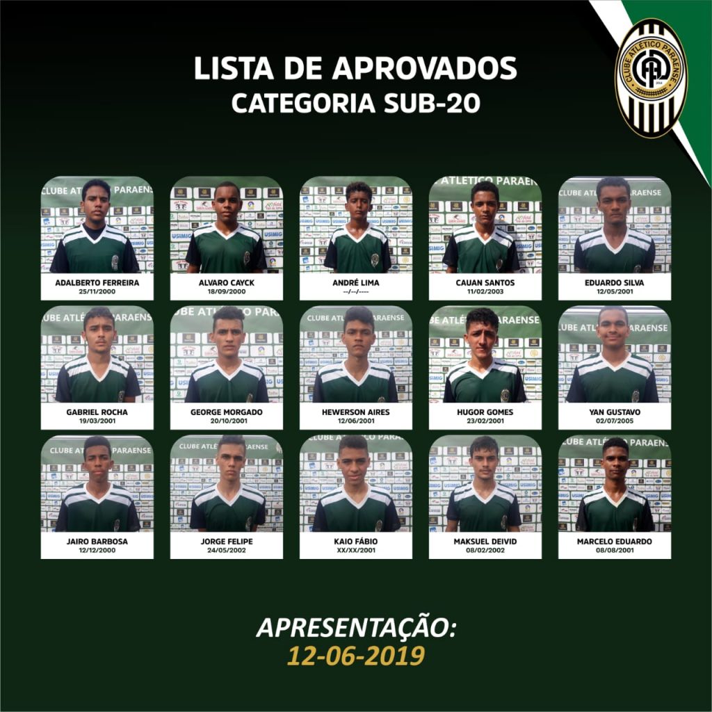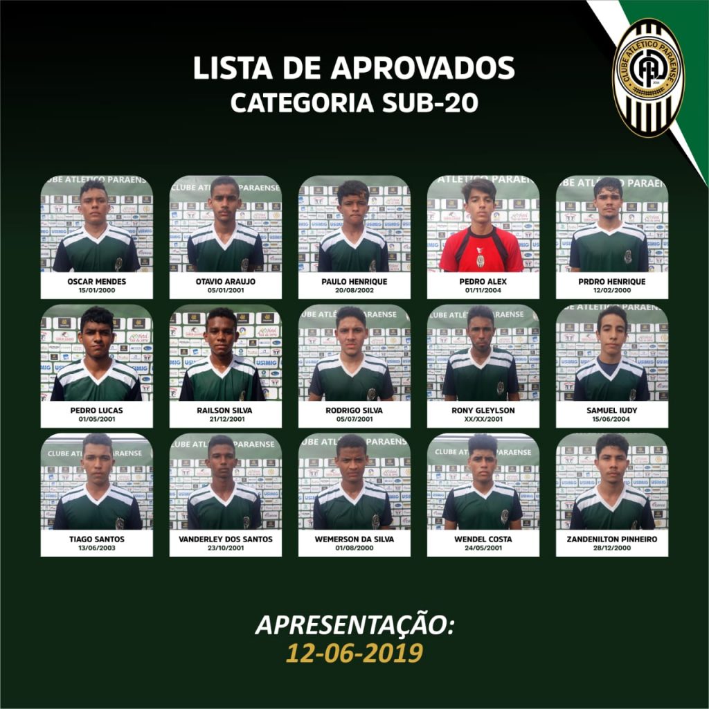 O Clube Atlético Paraense (CAP) divulgou de forma oficial na tarde desta segunda-feira (20) a lista dos atletas aprovados nas categorias Sub-20 e Profissional Sub-23.