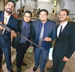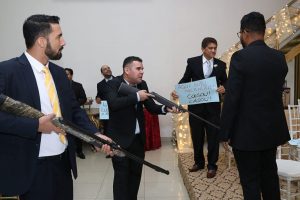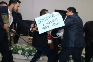 Dados os devidos créditos aos profissionais que atuam com eventos e festas, só tenho que agradecer os 105 convidados que se fizeram presentes. O noivo foi levado ao altar sob a mira de espingardas e amarrado até o pescoço. E não poderia ser diferente, haja vista a irreverência do recém casado.