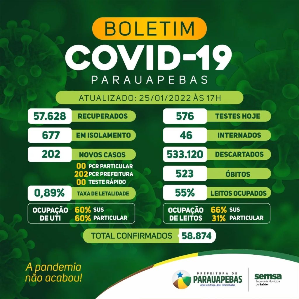 Divulgado pela Secretaria Municipal de Saúde de Parauapebas (Semsa) diariamente, o Boletim Epidemiológico desta terça-feira (25) trouxe dados preocupantes da pandemia de Covid-19 na “Capital do Minério”.