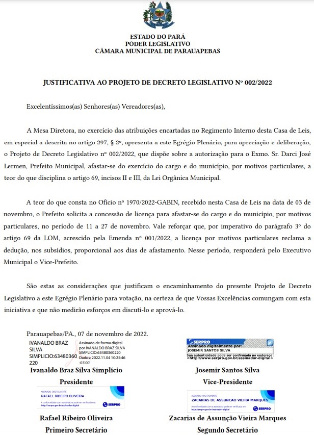 O Portal Pebinha de Açúcar teve acesso aos documentos publicados pela Câmara Municipal de Parauapebas. Eles serão analisados pelos vereadores na sessão desta terça-feira (8), confira abaixo na íntegra: