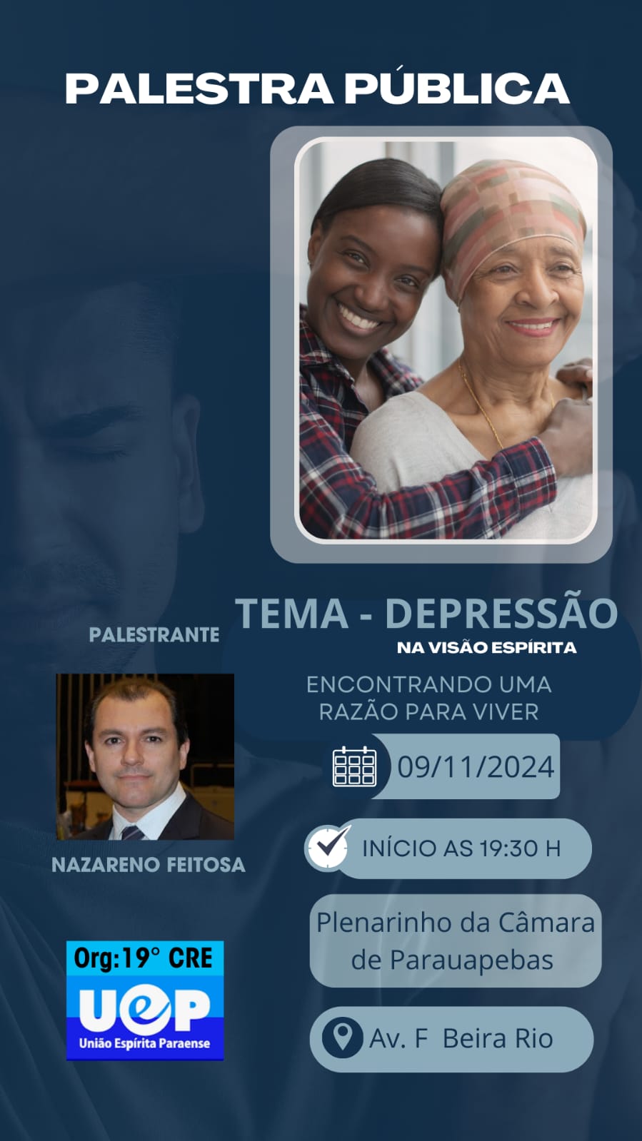 E no próximo sábado, dia 9, um conferencista nacional estará em Parauapebas para proferir a palestra “Depressão, na visão espírita. Encontrando uma Razão para Viver”. Com palestras já realizadas em mais de 40 países, o cearense Nazareno Feitosa é ex-ateu e fala com propriedade sobre a depressão, já que ele próprio sofreu com a doença.