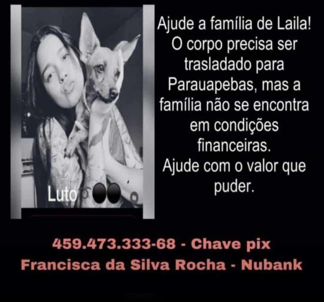A família da jovem Laila Vitória, que tinha 20 anos de idade, morta pelo próprio companheiro em Porto Alegre-RS, iniciou uma campanha financeira para realizar o translado do corpo até Parauapebas.