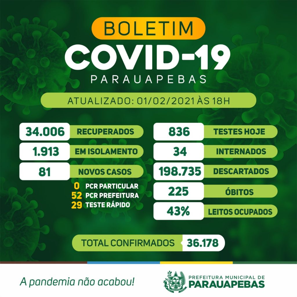 Fevereiro inicia com uma morte e 81 novos casos de Covid-19 em Parauapebas