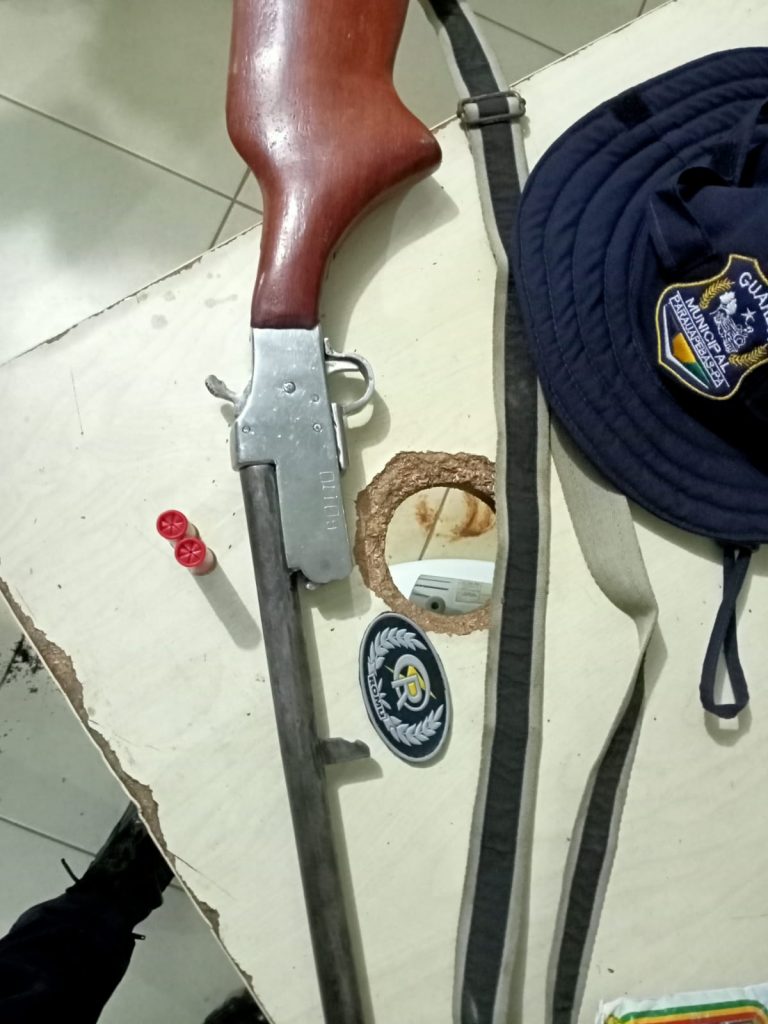 Os indivíduos Ailton de Jesus Ribeiro e Raimundo Soares Santana foram detidos por uma equipe da Guarda Municipal de Parauapebas (GMP), conduzindo uma espingarda amarrada na garupa da motocicleta e uma porção de maconha no bolso. A ocorrência aconteceu por volta das 18h40 desta terça-feira (7) na Rodovia PA-160, próximo do Atacadão Macre, em Parauapebas.