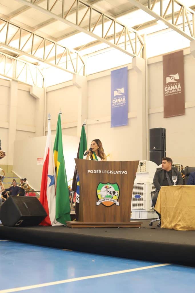 A prefeita Josemira Gadelha destacou o desejo se seguir trabalhando para a melhoria de vida das pessoas mais necessitadas, ao tomar posse para o seu segundo mandato como prefeita de Canaã dos Carajás, nesta quarta-feira (1º). A solenidade de posse foi realizada no Ginásio do Complexo Esportivo do Bairro Santa Vitória, e o público lotou as arquibancadas do local para prestigiar a cerimônia.