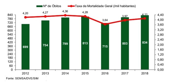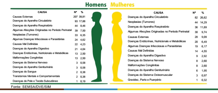 Os dados são do SIM, um sistema de vigilância epidemiológica nacional, cujo objetivo é captar dados sobre os óbitos do País, tendo como base o documento de entrada do sistema que é a Declaração de Óbito (DO), padronizada em todo o território nacional. Assim, faz-se uma análise epidemiológica da mortalidade que é um importante processo para o reconhecimento das condições de vida e saúde das populações.