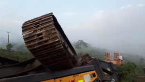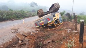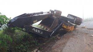 De acordo com informações repassadas pelo motorista da carreta ao repórter cinematográfico Fábio Marques, ele trafegava na estrada em velocidade reduzida, porém, ao fazer uma das curvas acentuadas da estrada que dá acesso ao Projeto Salobo, a máquina acabou se desprendendo da carreta e consequentemente caiu na estrada.