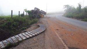 Felizmente houve apenas danos materiais, tendo em vista que ninguém se machucou durante o acidente que foi registrado na Estrada de acesso ao Projeto Salobo, em Parauapebas.