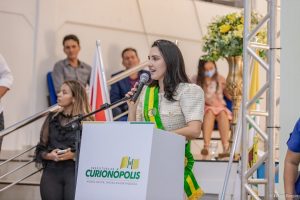 “Hoje vivi um dos momentos mais inesquecíveis de minha vida. Com grande alegria recebi a faixa de prefeita de Curionópolis das mãos de minhas filhas e de meu esposo Chamonzinho.