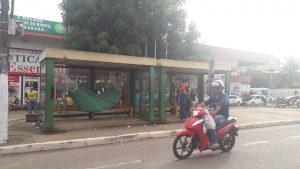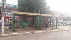 Trata-se de um morador de rua que quase todos os dias arma sua rede em uma parada de ônibus que fica localizada nas proximidades do terminal rodoviário do Bairro Beira Rio, em Parauapebas, atrapalhando quem buscava o local para sentar e aguardar os ônibus que fazem parte do transporte municipal.