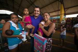 Durante a tarde desta sexta-feira (21) a Praça da Juventude, na sede do município, ficou lotada de crianças acompanhadas de seus familiares para participarem da ação beneficente que distribuiu brinquedos e promoveu entretenimento saudável para centenas de crianças da comunidade.