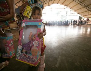 “Eu agradeço muito ao prefeito por receber essa boneca, é a primeira vez que recebo um presente de Natal assim. Eu estou gostando dos brinquedos, dos lanches. Está muito legal”, disse a pequena Janaína Barbosa, de 9 anos, durante o Natal Social promovido pela Prefeitura Municipal de Curionópolis através da Secretaria Municipal de Assistência Social (Semas).