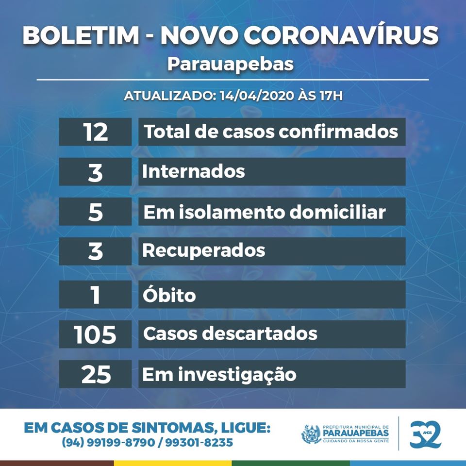 Nesta terça-feira, 14, de acordo com a Secretaria Municipal de Saúde de Parauapebas (Semsa), a “Capital do Minério” somou 105 casos descartados para o noco Coronavírus e 25 seguem em investigação.
