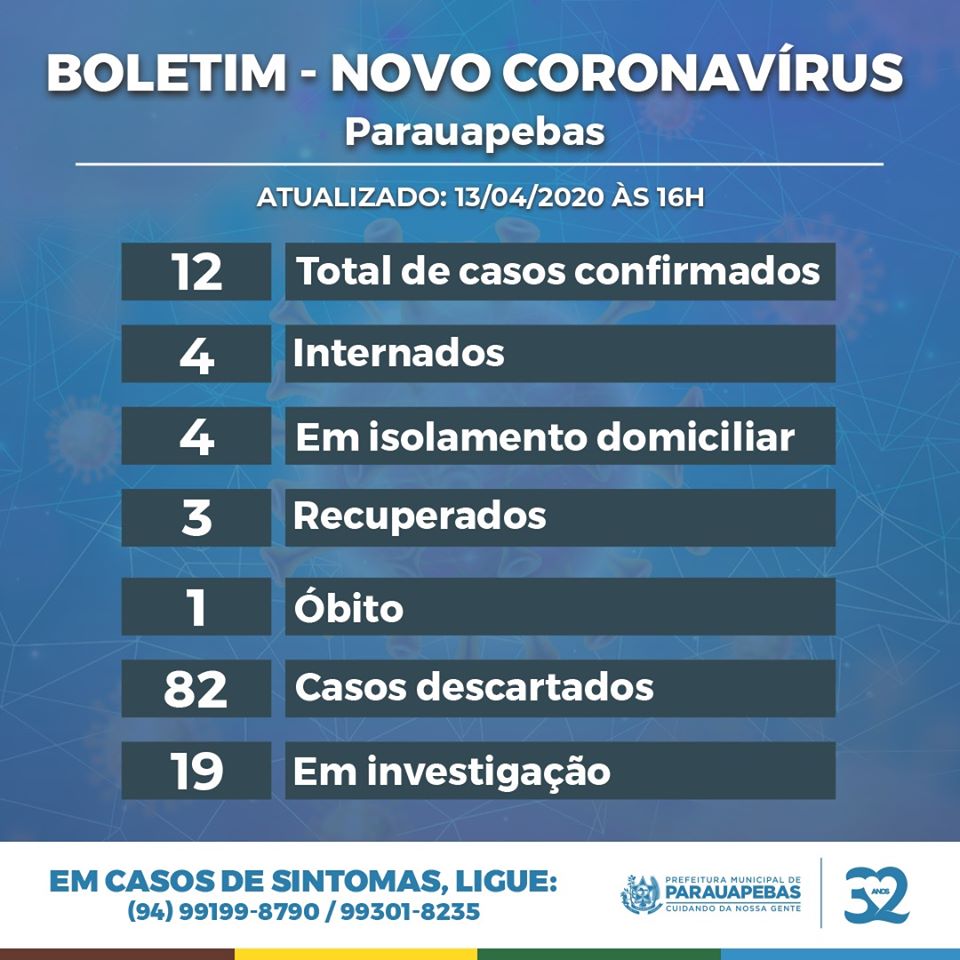 Durante a tarde desta segunda-feira (13), a Prefeitura Municipal de Parauapebas, através da Secretaria Municipal de Saúde (Semsa), divulgou o mais recente boletim epidemiológico que mostra as estatísticas da Covid-19 na “Capital do Minério”.