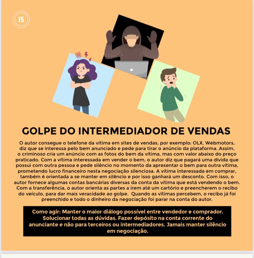 A Polícia Civil do Pará, através da 20ª Seccional em Parauapebas, realiza campanha de alerta para que a população não caia nos golpes já com muitas incidências em “Capital do Minério”. No alerta inclui as negociações através de aplicativos de vendas, tipo OLX, Mercado Livre ou web motos; pedindo que as pessoas procurem obter o máximo de informações possíveis, não mantenha silêncio de negociação e sempre desconfie de preços muito abaixo de mercado. “Só finalize um negócio efetuando o pagamento por meio presencial. Se for compra de veículo, somente faça negócio com o proprietário e providencie de imediato a transferência mediante pagamento para a conta do dono do bem”, recomenda Felipe Oliveira, pedindo que sejam evitadas transferências para contas de terceiros ou intermediadores.