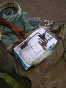“Quando eu era novo entrei em muitas empresas”, informou, e em seguida mostrou a carteira profissional, que anda enrolada em três sacos plásticos e por baixo das camisas que veste, enfiada na cintura por dentro da calça. Outros documentos ele guarda bem embrulhados dentro de sacos plásticos e pastas de papel.