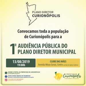 O governo municipal convida toda a população para participar das audiências públicas. A primeira será realizada nesta terça-feira, 13, às 19 horas no Clube das Mães, em Curionópolis. As oficinas participativas serão realizadas na quarta-feira, 14, a partir das 8 horas, com representantes da comunidade e organizações sociais. Às 19 horas, representantes do setor produtivo também se reunirão.