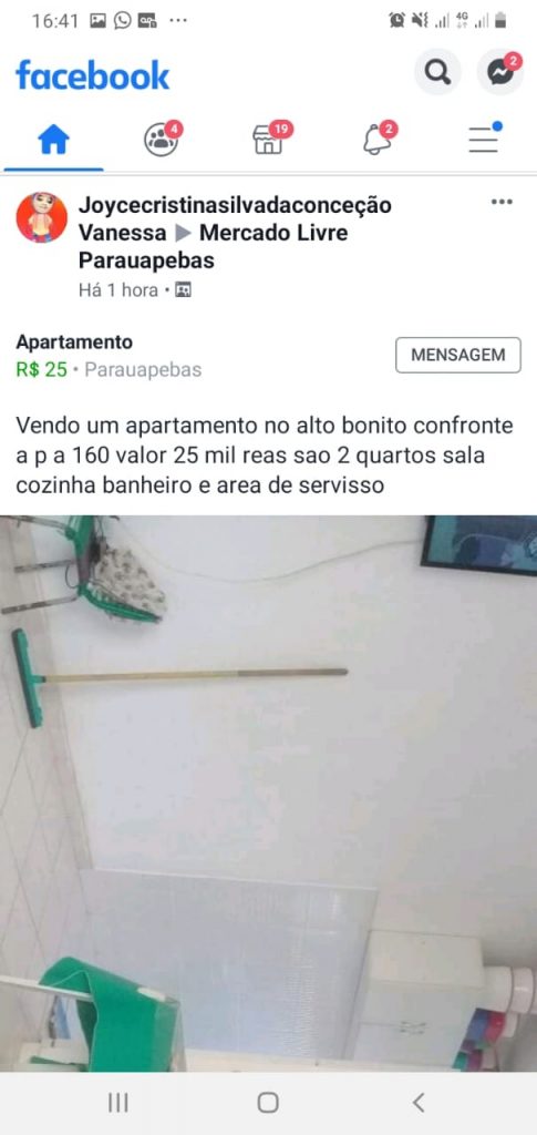 Um anúncio feito em um grupo de compras pela internet chamou a atenção da equipe da Secretaria de Habitação de Parauapebas (Sehab). Nele, a suposta moradora pedia o valor de R$ 25 mil reais pela venda de um apartamento no Residencial Alto Bonito.