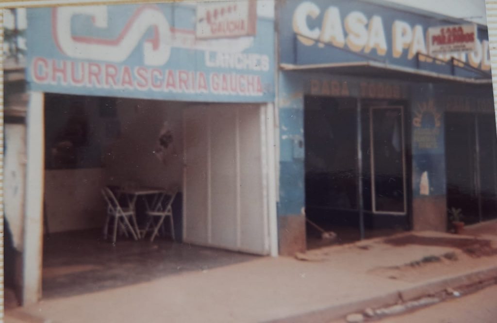 “A prefeita Bel me arrumou uns pedaços de compensados de sobras de casas que haviam sido desmontadas lá no Núcleo Carajás. Havia muita poeira no povoado e precisa forrar o teto. Comprei fiado uma grade de cerveja, uma caixa de refrigerante, um freezer, que paguei em quatro parcelas com cheques pré-datados e montei a lanchonete Sérgio Lanches, onde hoje é a Casa das Noivas, ali na altura da Loja Opção, na Rua do Comércio. Nesta lanchonete começou a ser fundada a Churrascaria Gaúcha. Eu mesmo fazia o churrasco, minha mulher era a garçonete, com o apoio de uma cozinheira. Depois comprei um terreno na Rua 24 de Março, onde é hoje o INSS, no Rio Verde, construí um prédio e lá instalei de fato a Churrascaria Gaúcha”, lembra o empresário.