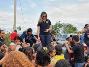 Na oportunidade, foi realizada a distribuição de mais de seiscentos brinquedos, além de pipocas, pirulitos e balas para crianças carentes da cidade.