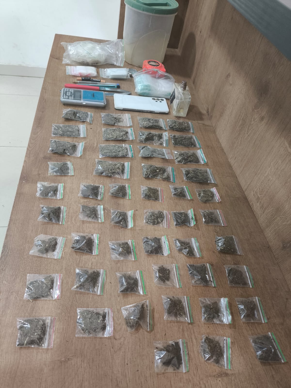- 49 papelotes de substância análoga à maconha, pesando aproximadamente 133,6 gramas;