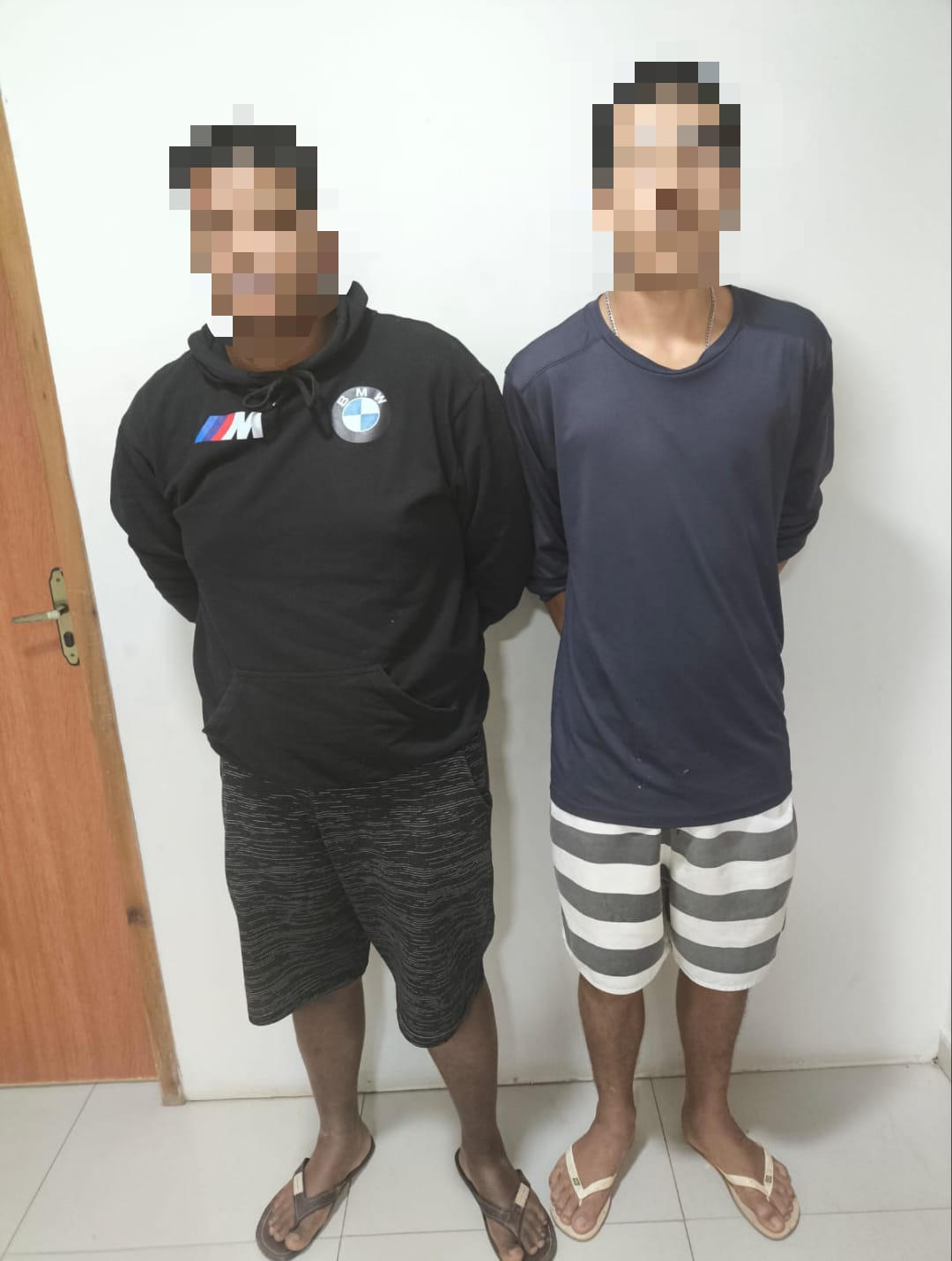 Os dois suspeitos, identificados pelas iniciais V.S.A.B. e K.S.A., foram conduzidos à Delegacia de Polícia Civil para os procedimentos legais cabíveis.