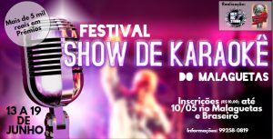 agenda cultural, parauapebas Abertas inscrições para o Festival Show de Karaokê do Malaguetas Publicado em 24/05/2016