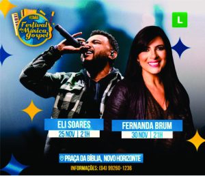 evento gratuito CANAÃ DOS CARAJÁS: Eli Soares e Fernanda Brum estarão no Festival de Música Gospel Publicado em 21/11/2023