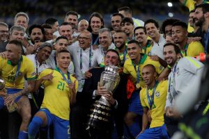 Mito Após vitória, Bolsonaro posa para foto junto com jogadores da Seleção Brasileira Publicado em 07/07/2019