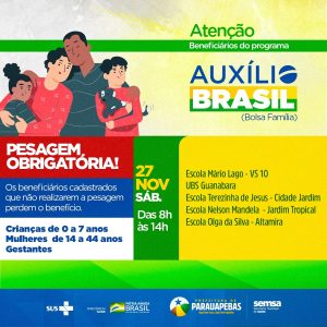 social Auxílio Brasil: Saúde faz convocação para pesagem dos beneficiários em Parauapebas Publicado em 24/11/2021