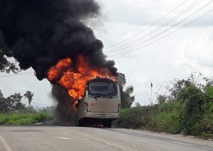 Susto VÍDEO: Microônibus apresenta problemas e incêndio é registrado na Estrada de acesso ao Projeto Salobo Publicado em 22/12/2021