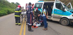 O Samu já havia começado a fazer o resgate. Todos os passageiros da van ficaram feridos com algum tipo de escoriação, mas o motorista foi quem ficou em estado que inspira mais cuidados.